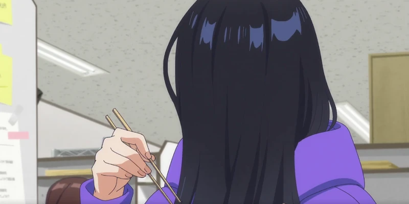 2. Thế giới trong anime của Natsuko: Khi Natsuko tưởng tượng về bộ phim Rom-com, màu sắc bỗng rực rỡ, bay bổng, sử dụng tông pastel ngọt ngào. Sự chuyển đổi mượt mà giữa hai thế giới này là điểm nhấn thị giác cực mạnh.